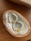 This playful pearl bracelet is all about spreading joy and love! Featuring delicate pearls, a cheerful yellow smiley bead, and a golden heart charm, it perfectly combines fun and elegance.