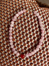 This playful beaded necklace with a red heart pendant is the perfect mix of fun and style.