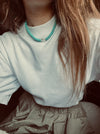 Elegant and timeless, this handcrafted necklace combines vibrant turquoise beads with a unique freshwater pearl. Perfect for adding a touch of sophistication to any outfit.